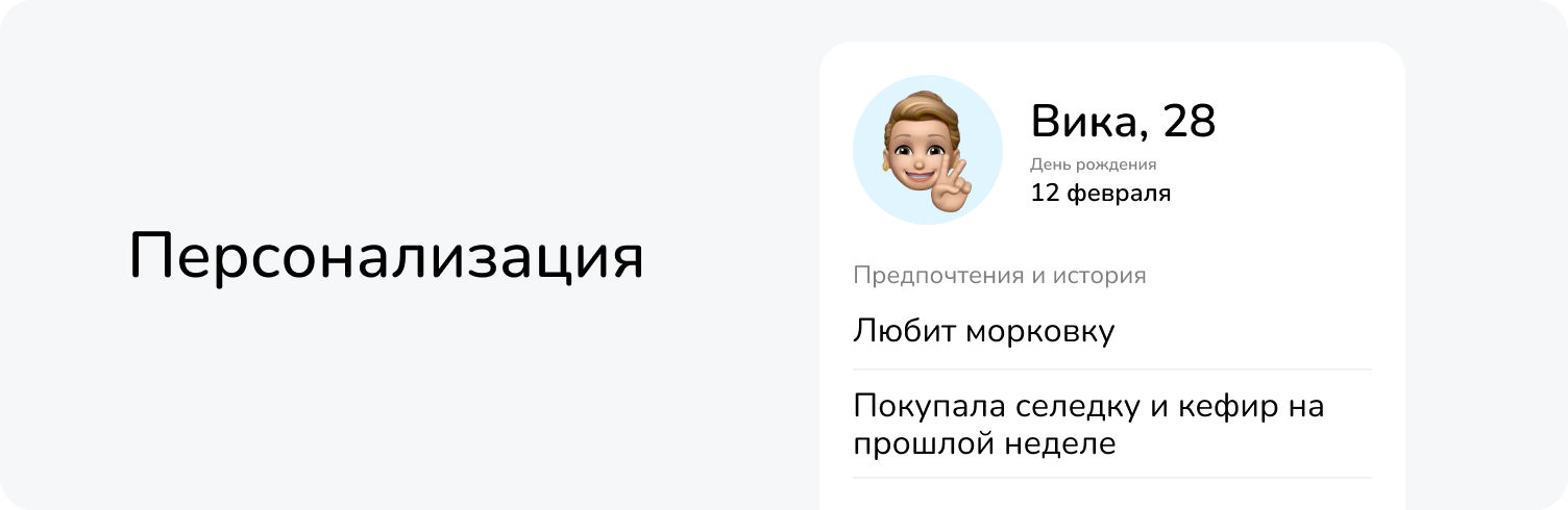 Персональные рекомендации выросли и на стороне маркетинга, и на стороне поддержки. Рассмотрим ритейл: подборки товаров на основе поведения приходят сразу в мессенджер, а не только на e-mail.