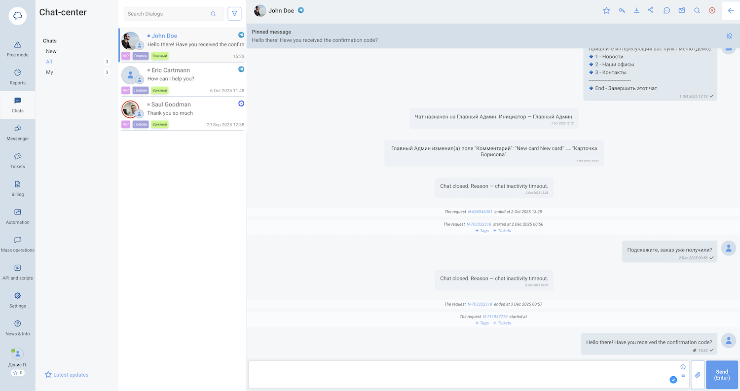 In release 2.93, we improved channel management, added message pinning in chats, expanded dialog analytics, and introduced new warning thresholds for dialog balance. We also automated WhatsApp Business API onboarding via Gupshup. All details are available in the November digest.