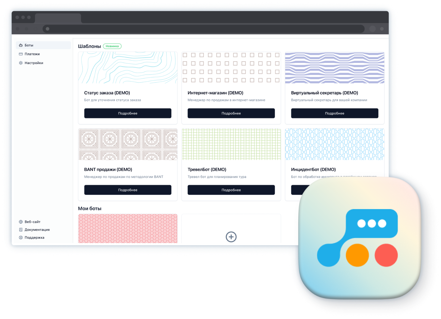 - Бот индексирует вашу документацию и отвечает клиентам по существу, а не шаблонными фразами.